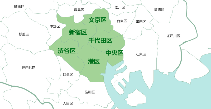 港区・渋谷区・新宿区・千代田区・目黒区・中央区・文京区